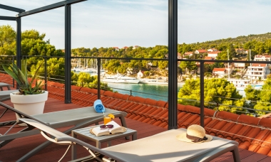 All Double Rooms Top Floor provide modern and elegant furniture for sophisticated and private comfort during your vacation. The best feature of these rooms is a shared Roof Top Deck Lounge reserved for relaxation, morning coffee, sunrise and sunset views, and anything in between.
